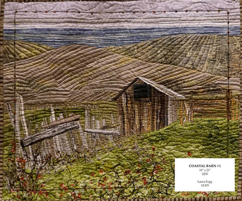 Laura has been a mural painter and seamstress for many years, and has recently begun to combine the two media and go in a whole new direction — art quilting. She uses a “painterly” collage style in her art, with landscapes as her primary focus. Much of her inspiration comes from the beauty she enjoys on a daily basis in Mendocino County.
